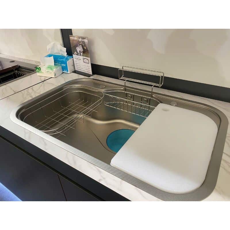 - Thiết kế rộng rãi: Chậu đơn (1 hố) với lòng chậu sâu và rộng, dễ dàng chứa các loại nồi, chảo lớn, mang lại sự thuận tiện tối đa khi rửa.