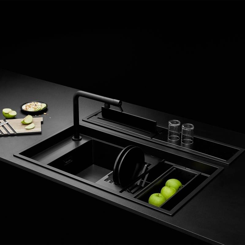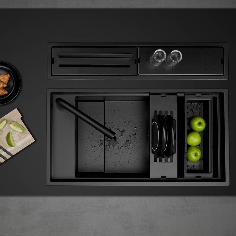 - Màu sắc sang trọng: Hai phiên bản màu đen và xám dễ dàng kết hợp với nhiều loại mặt đá bếp, tạo nên tổng thể bếp đồng bộ và hiện đại.