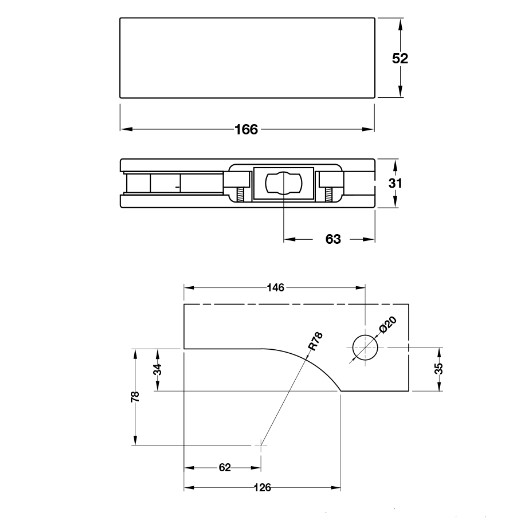 Kẹp kính dưới đen mờ Hafele 981.00.655