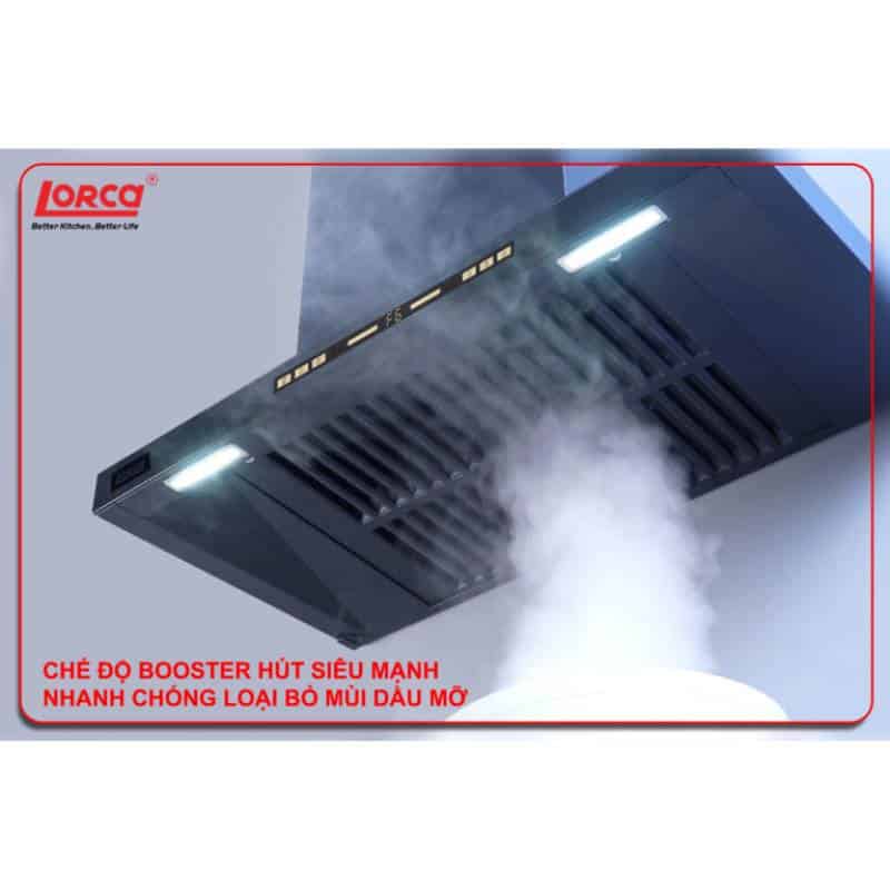 - Công nghệ Booster hút cực mạnh: Cho phép tăng công suất tối đa trong vài giây, loại bỏ đến 95% khói và mùi dầu mỡ, lý tưởng cho các món chiên xào hoặc nấu liên tục.